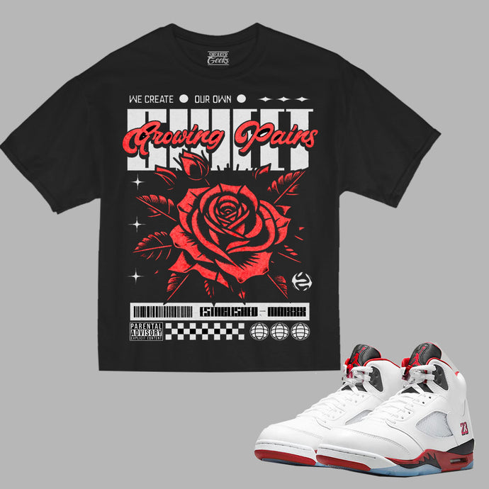 Growing Pains T-Shirt to match Retro Jordan 5 Fire Red Black Tongue