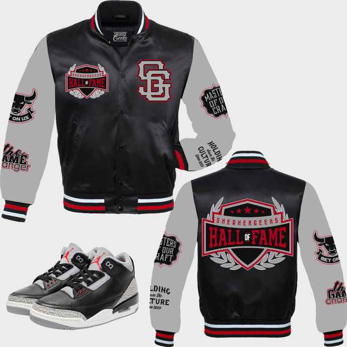 Hall Of Fame Satin Jacket to match Retro Jordan 3 Black Cement sneakers