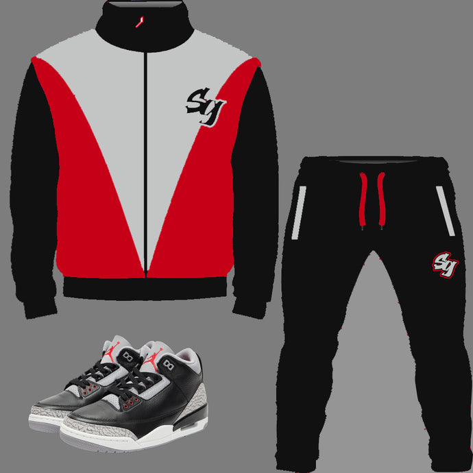 SG Nostalgia Tracksuit to match Retro Jordan 3 Black Cement sneakers
