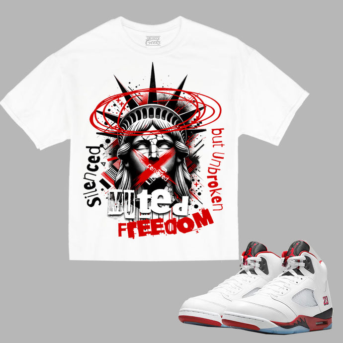 Muted Freedom T-Shirt to match Retro Jordan 5 Fire Red Black Tongue