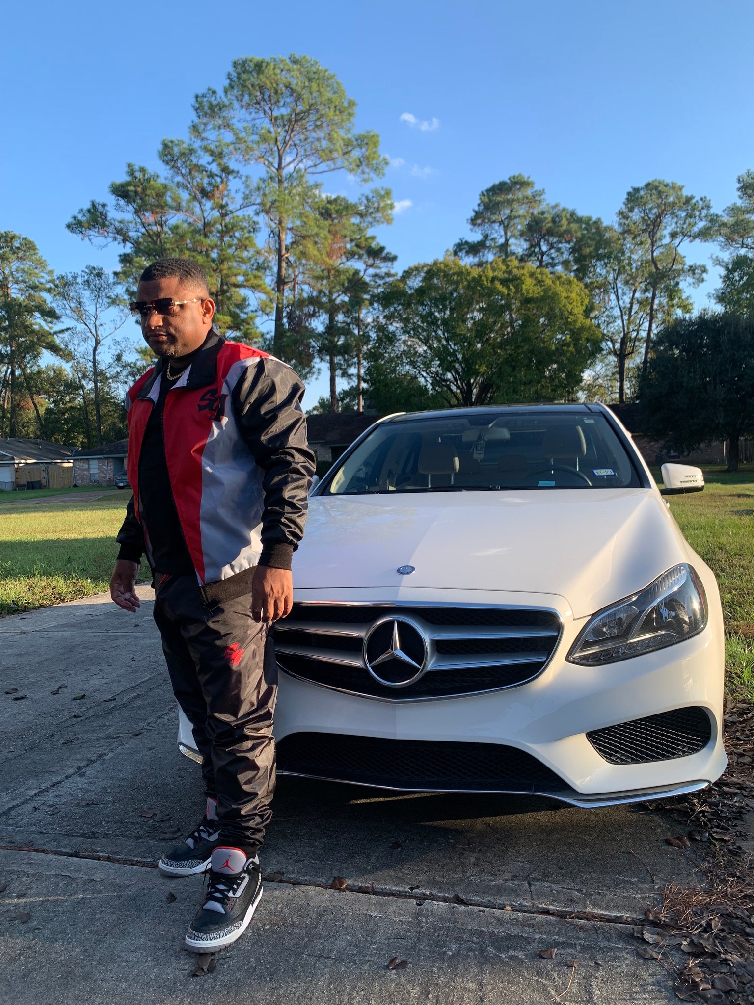 You are viewing the SG Nostalgia Tracksuit to match the Retro Jordan 5 Fire Red Black Tongue sneakers. This set is Polyester and the fit is true to size.